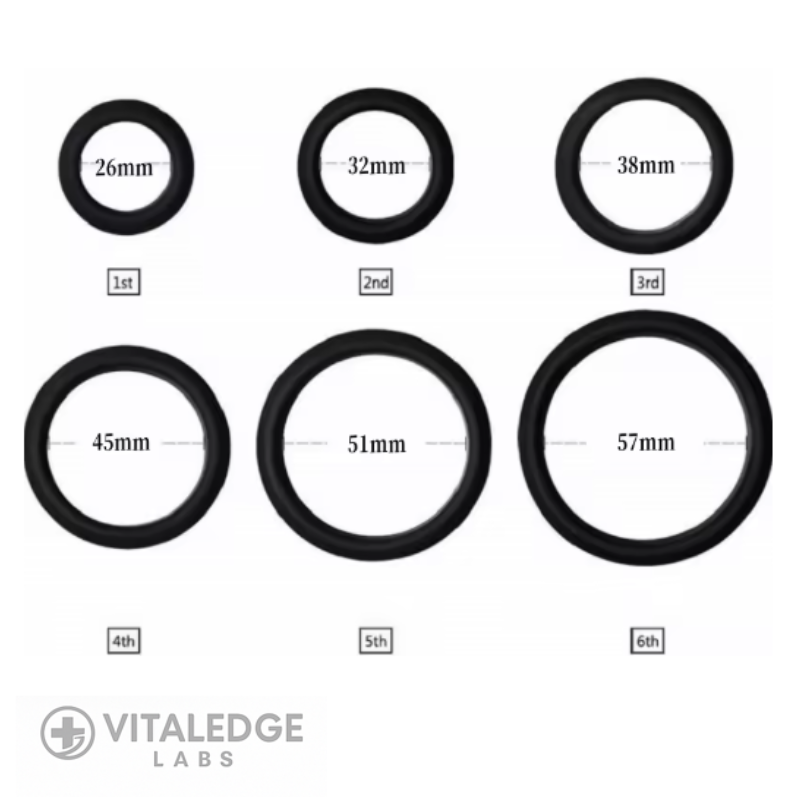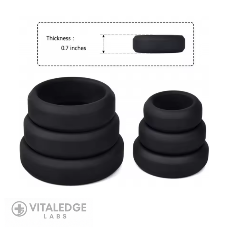 The VitalEdge™ Performance Retention Ring is a medical-grade silicone support ring engineered to help maintain the increased blood flow achieved during vacuum therapy. By providing gentle compression at the base, the ring helps preserve firmness, enhance sensitivity, and support longer-lasting performance.