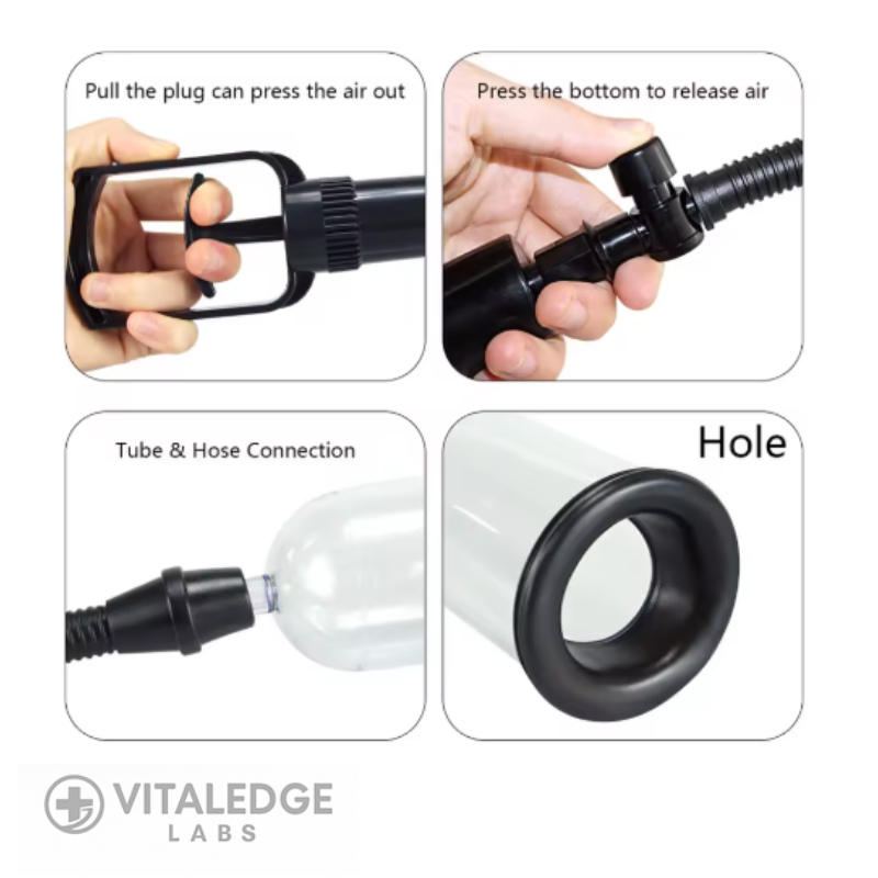 The VitalEdge™ VasoPump  is a clinically-inspired vacuum therapy device engineered to improve penile blood circulation, erection quality, and vascular responsiveness. Using controlled negative pressure, the system draws increased blood flow into the erectile tissue, helping strengthen vascular performance and support overall sexual function.